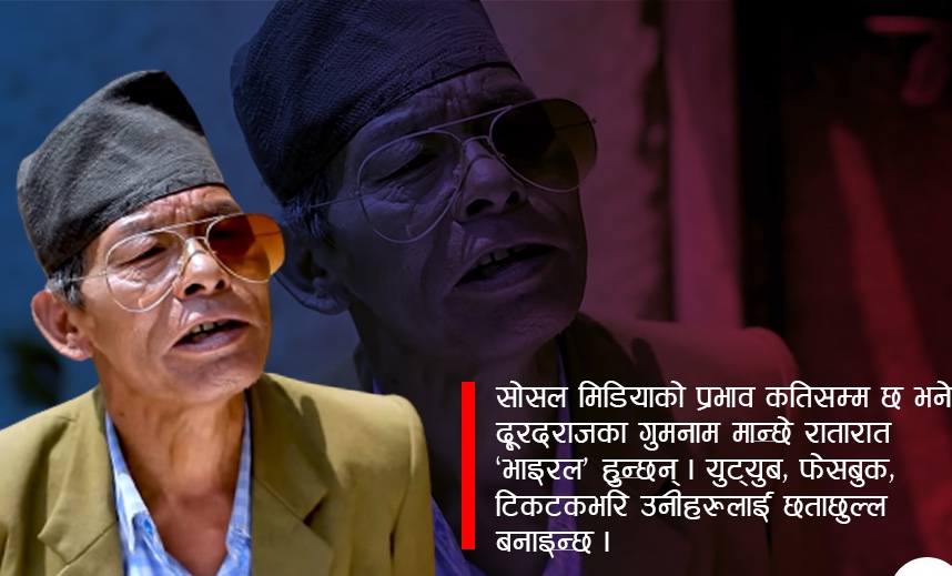 सोसल मिडियाको प्रभाव कतिसम्म छ भने दूरदराजका एक गुमनाम व्यक्ति रातारात ‘भाइरल’ हुन्छन् । युट्युब, फेसबुक र टिकटकभरि उनलाई छताछुल्ल बनाइन्छ । मानिसहरु उनको बोल्ने शैली, भाषा र हाउभाउमा यसरी रमाउँछन् कि अब उनलाई आफ्नो ढंगले बाँच्ने फुर्सद नै मिल्दैन । टिकटक बनाउनेदेखि युट्युबमा भिडियो बनाउनेहरू उनलाई पछ्याउन थाल्छन् ।